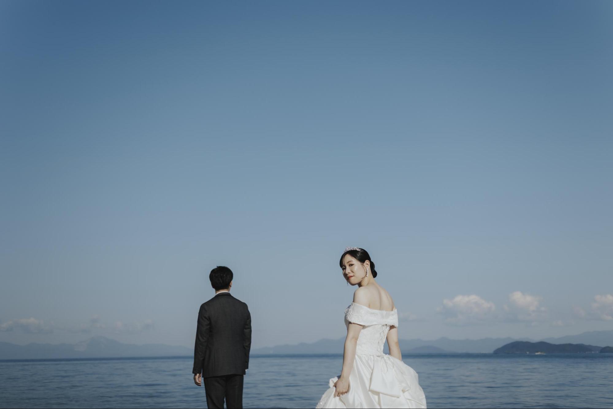 後撮りなら、結婚式の余韻を楽しみながら、改めて衣裳を着て撮影できます。最近は新婚旅行先でロケーション撮影をするカップルも増えており、思い出と旅行を兼ねられる点で人気があります。