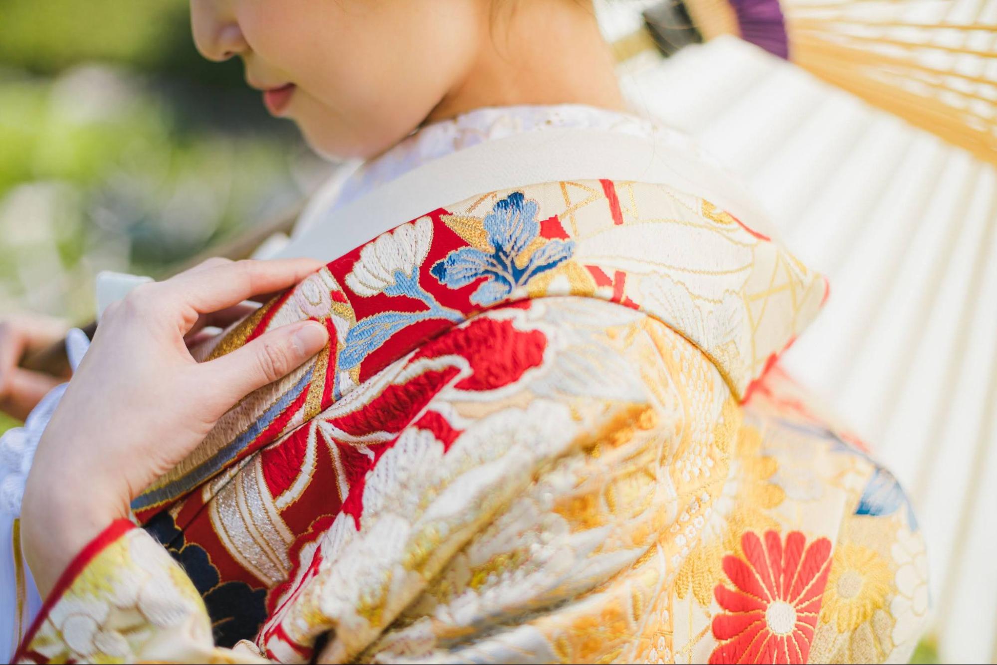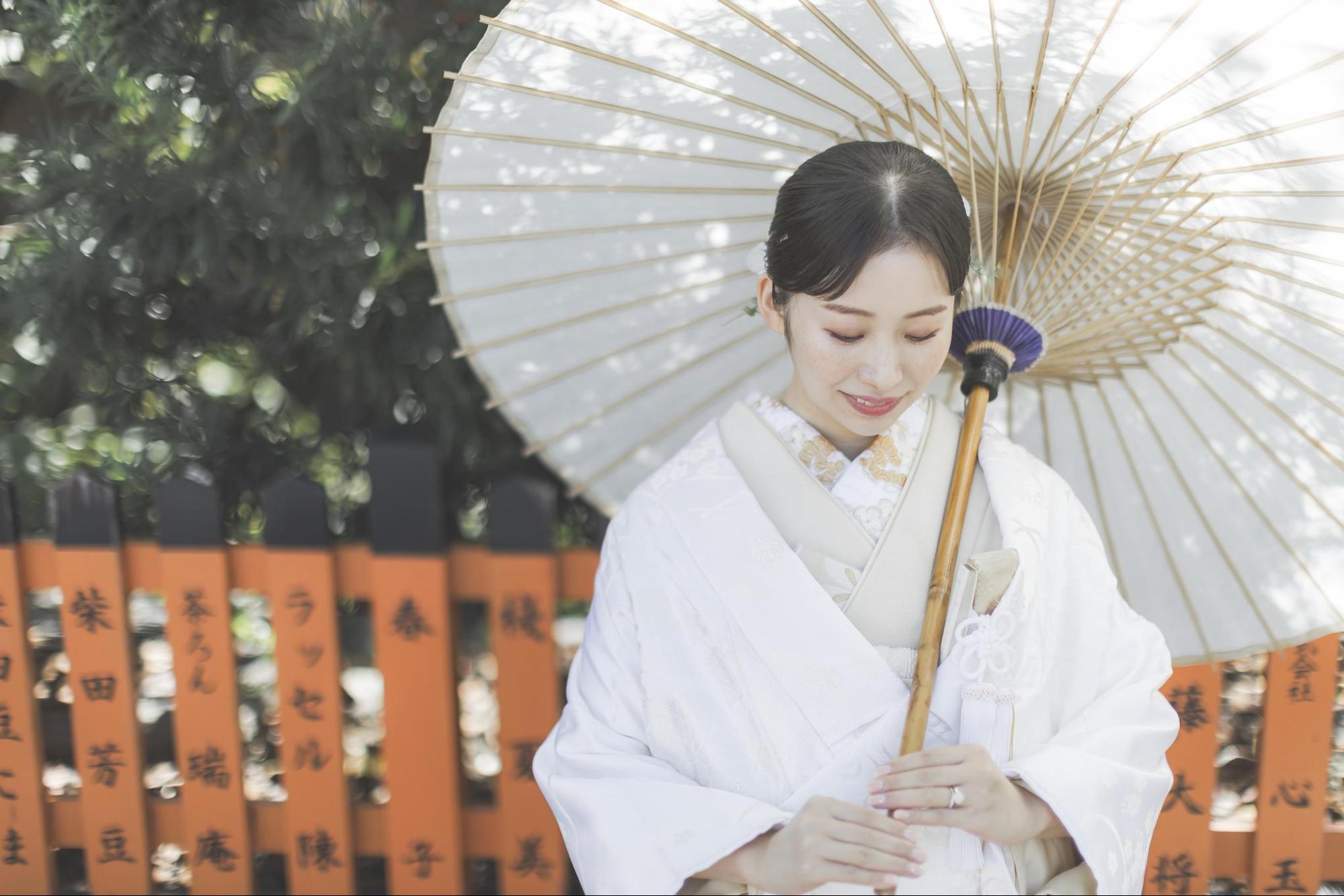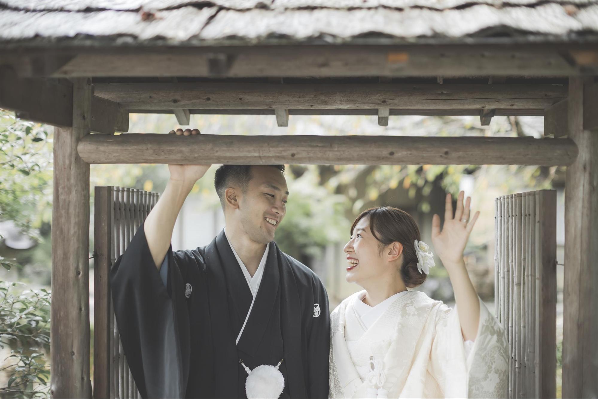 前撮りでは、結婚式当日とは異なる衣裳を楽しめます。結婚式では純白のウェディングドレスを着る新婦の方が多いですが、前撮りでは和装を選ぶのも良いでしょう。