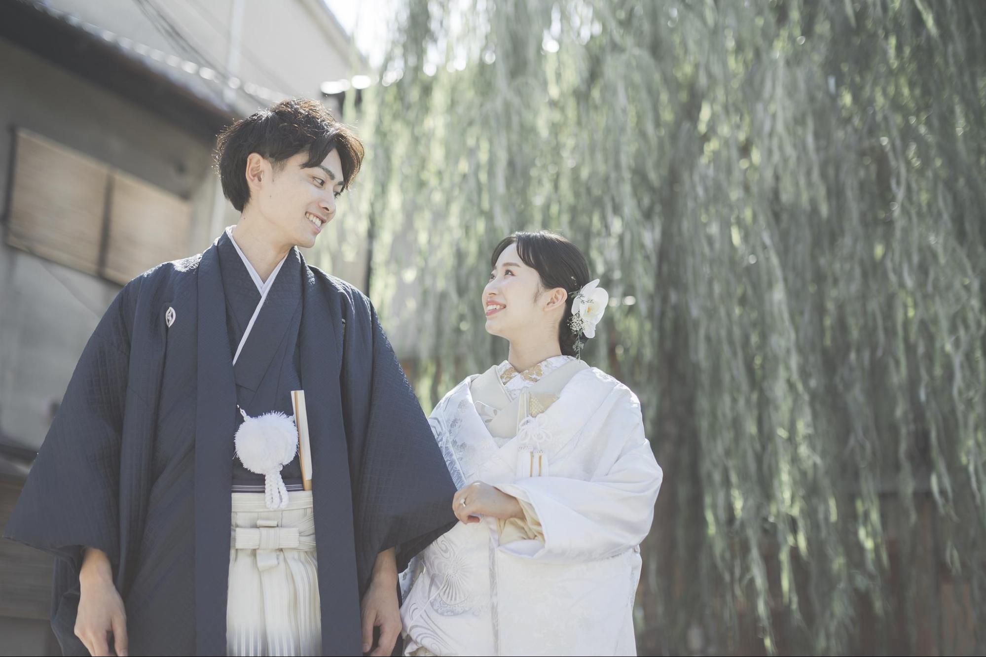 また、和装の前撮りは洋装とは異なる雰囲気で撮影できるため、両方のスタイルを楽しみたいカップルに好評です。神社やお寺などのロケーションで撮影すれば、より和装の印象が引き立ちます。そのため、スタジオだけでなくロケーション撮影も視野に入れてみてください。