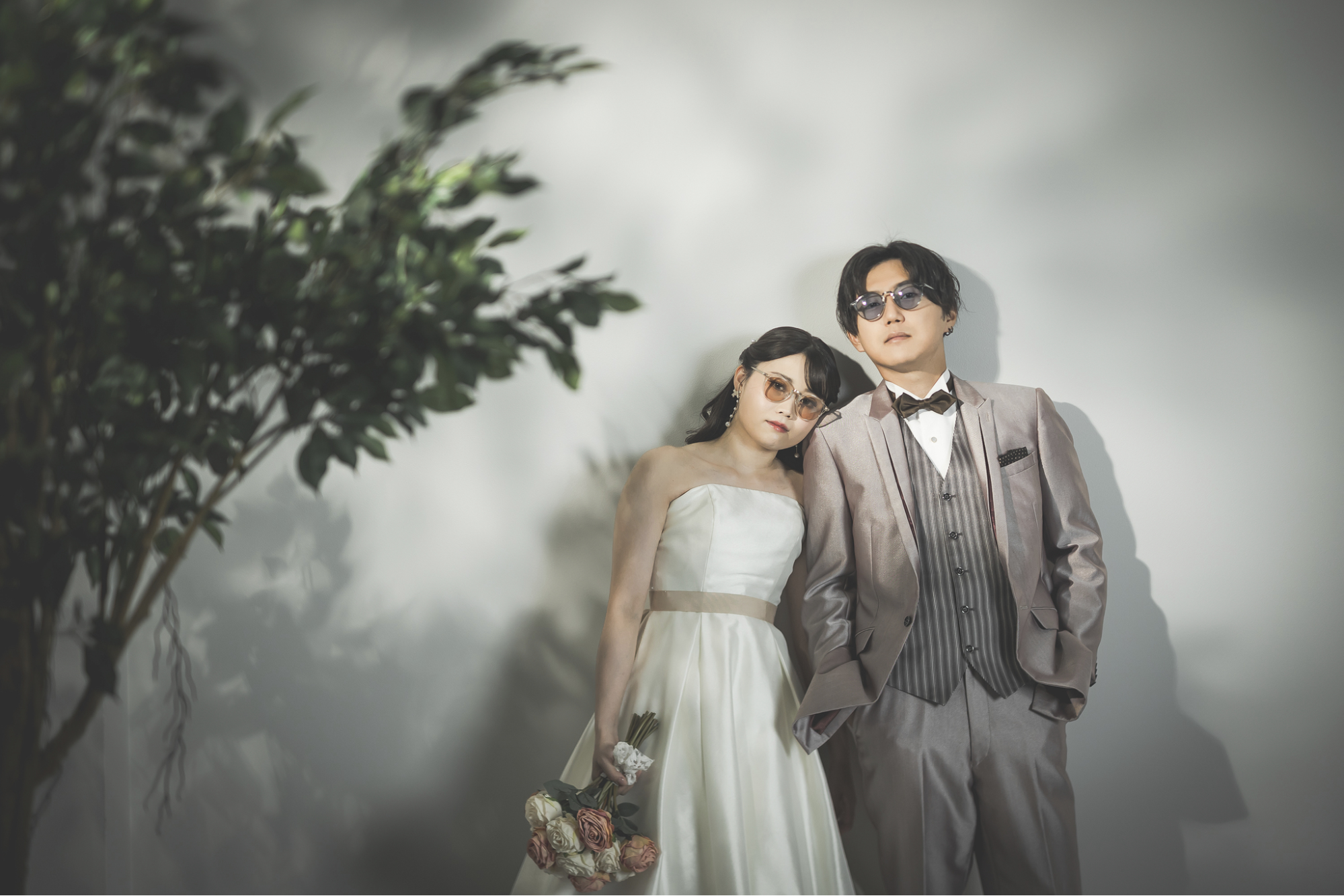 遊び心を取り入れたいなら、サングラスやお揃いのスニーカーなどのカジュアルアイテムがおすすめです。ドレスにサングラスを合わせることで、ポップで楽しげな雰囲気になります。