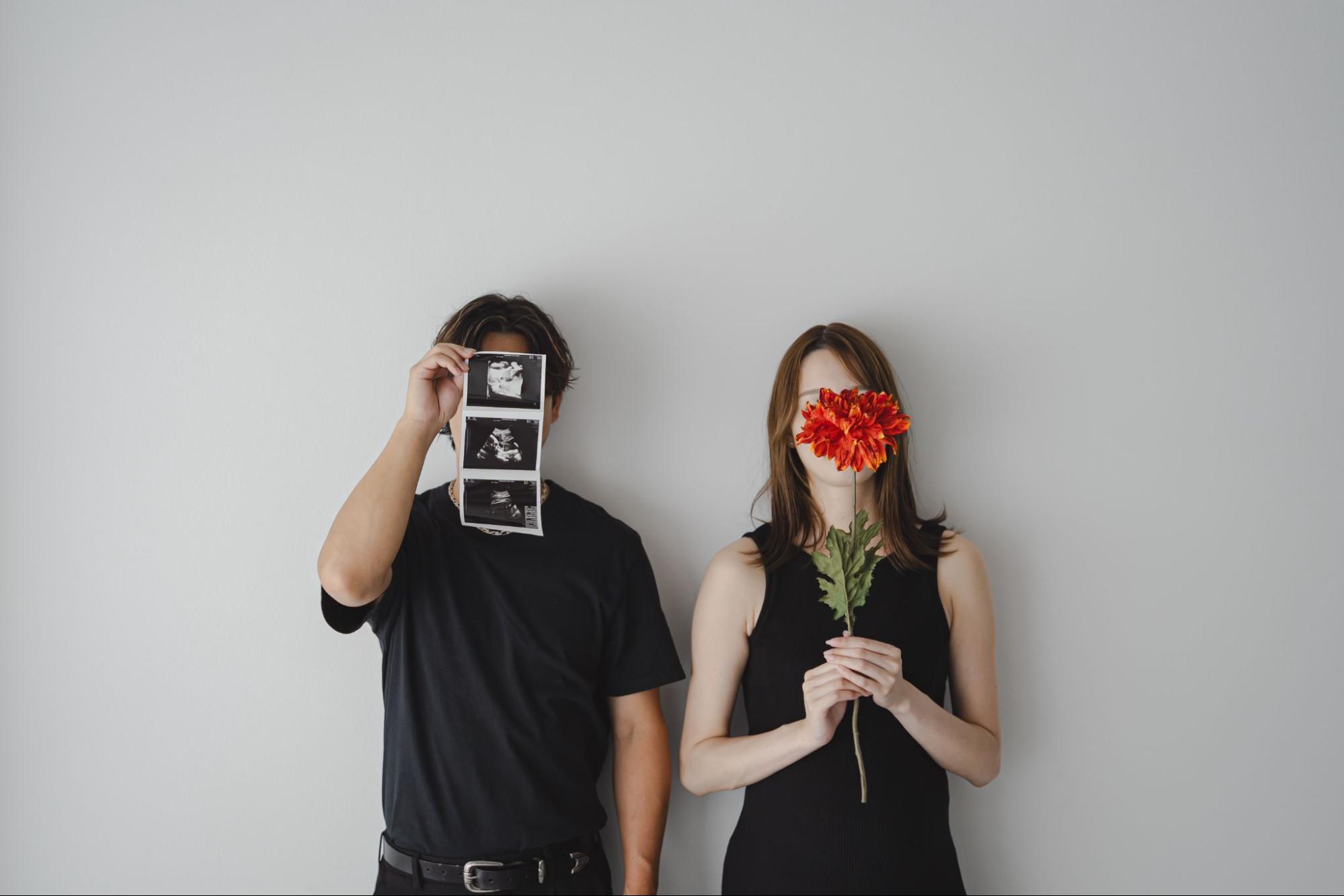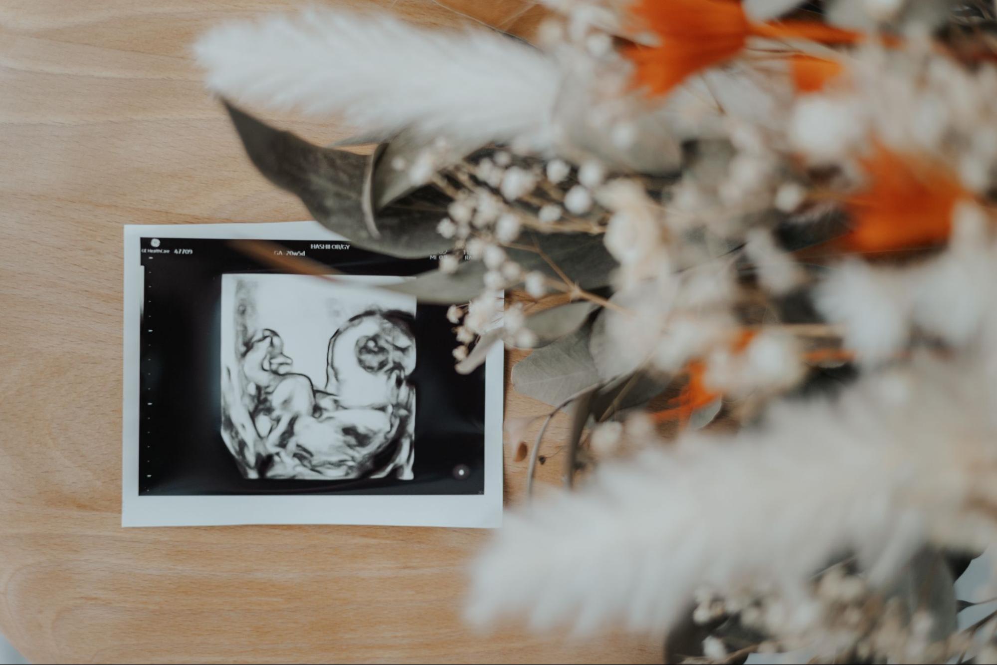 最もポピュラーで感動的なアイテムがエコー写真です。お腹の前に掲げて遠近法で撮影したり、2人の笑顔と一緒にフレームに収めたりすれば、赤ちゃんの存在をリアルに感じられます。