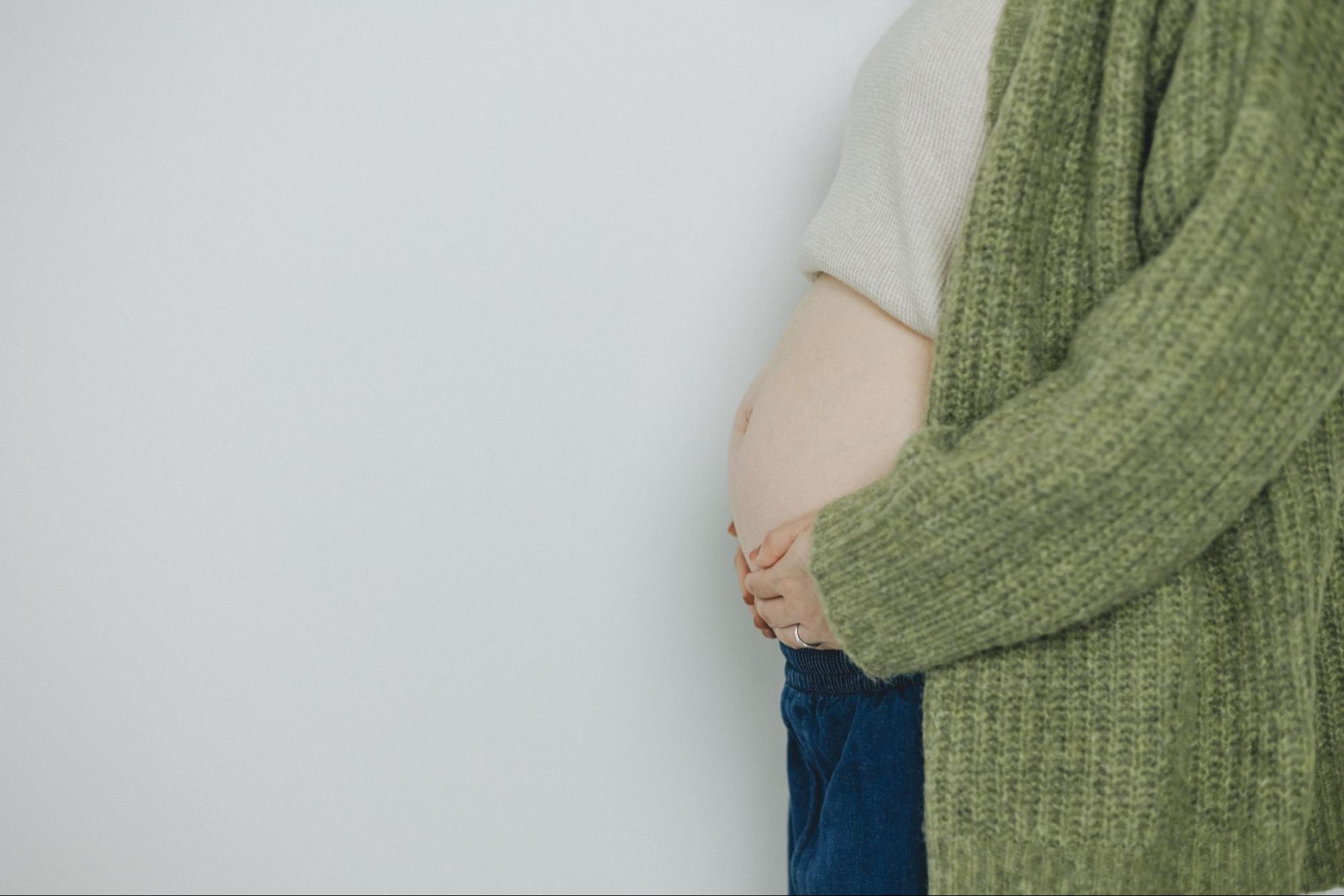 おなかの膨らみをアピールするポーズ