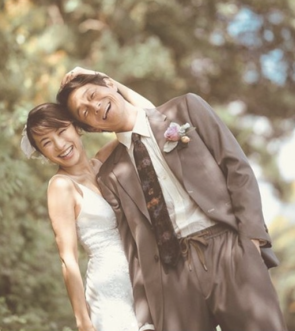 自然の中で撮られた写真と自然体でナチュラルな笑顔がマッチして、見ている方もほっこりと幸せな気分になれるような1枚です。ファンからも「こんな年の重ね方をしたい」などとコメントがあり、どの世代からも憧れるようなすてきなウエディングフォトに仕上がっています。
