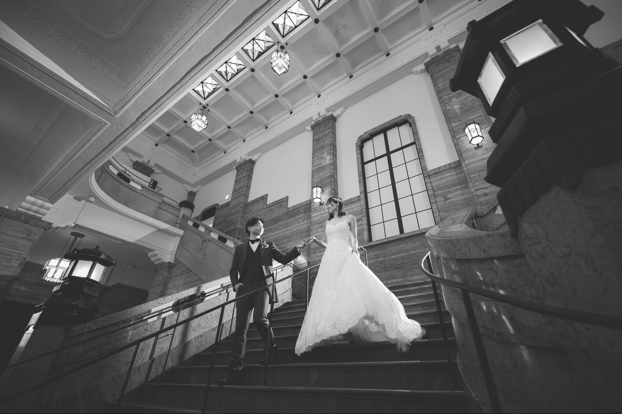 階段を使った花嫁単独の写真も、洋装で人気のポーズです。階段に座る、または下りながら振り返る姿は、映画のワンシーンのような演出が可能です。ドレスの裾を美しく広げることで、写真全体に動きと華やかさが生まれます。