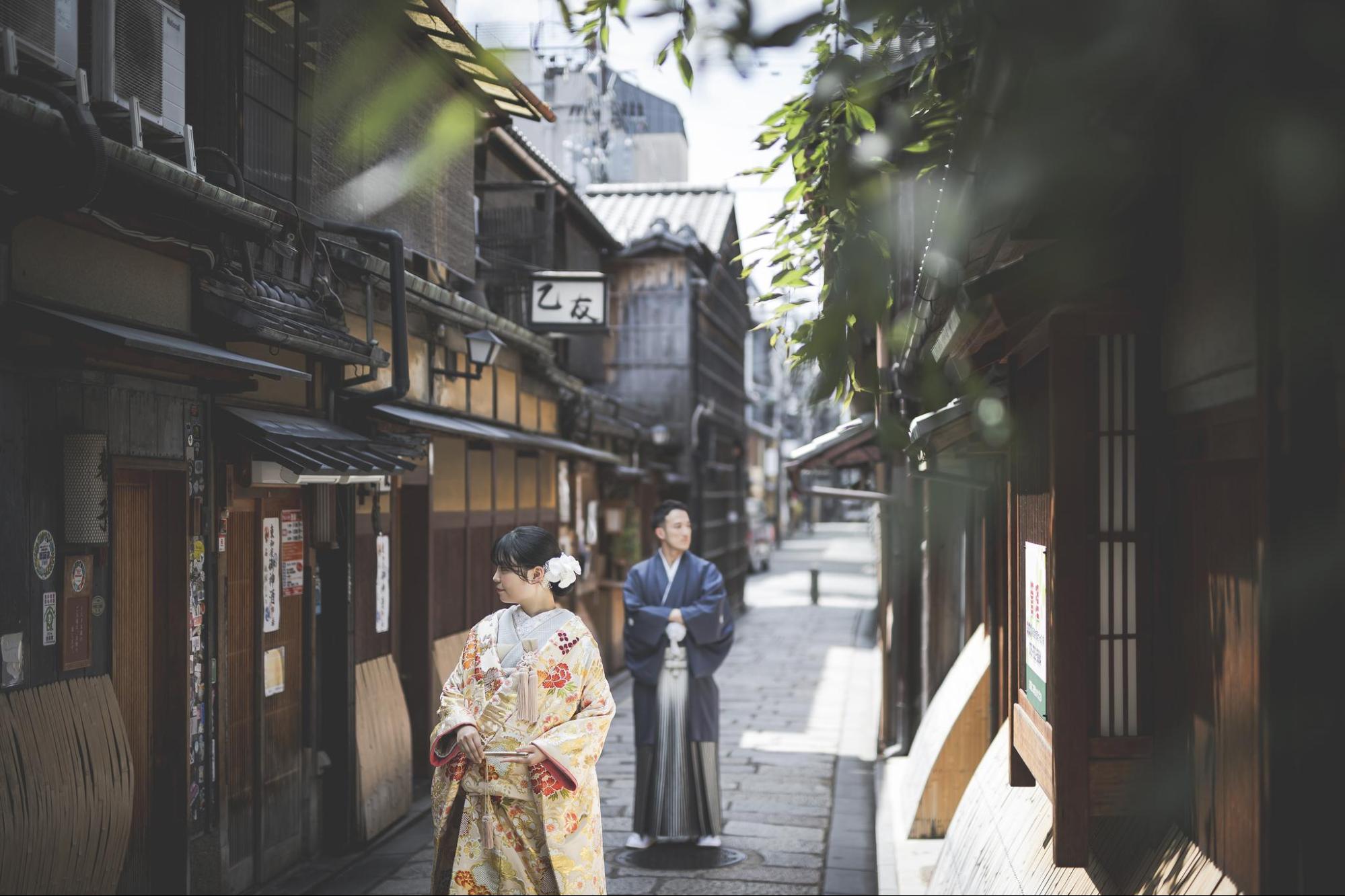 風情あふれる石畳と町家が並ぶ祇園の街並みは、和装フォトとの相性が抜群です。朝や夕方など混雑の少ない時間帯を狙うことで、静かで情緒豊かな写真が撮影できます。歴史と文化を感じさせる1枚に仕上がります。和装でロケーション撮影スポットに迷った際は、祇園を選ぶと失敗することなく、満足のいく撮影が可能です。