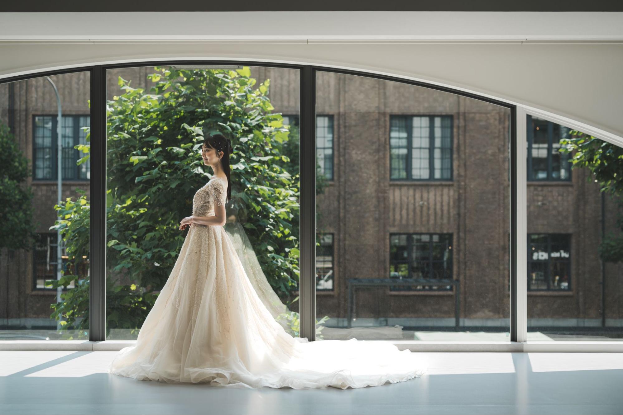 また、結婚式の一環としてスタジオでの「前撮り」文化が非常に盛んです。前撮りでは、ドレスの映え感を意識したボリュームや装飾のあるデザインが人気です。