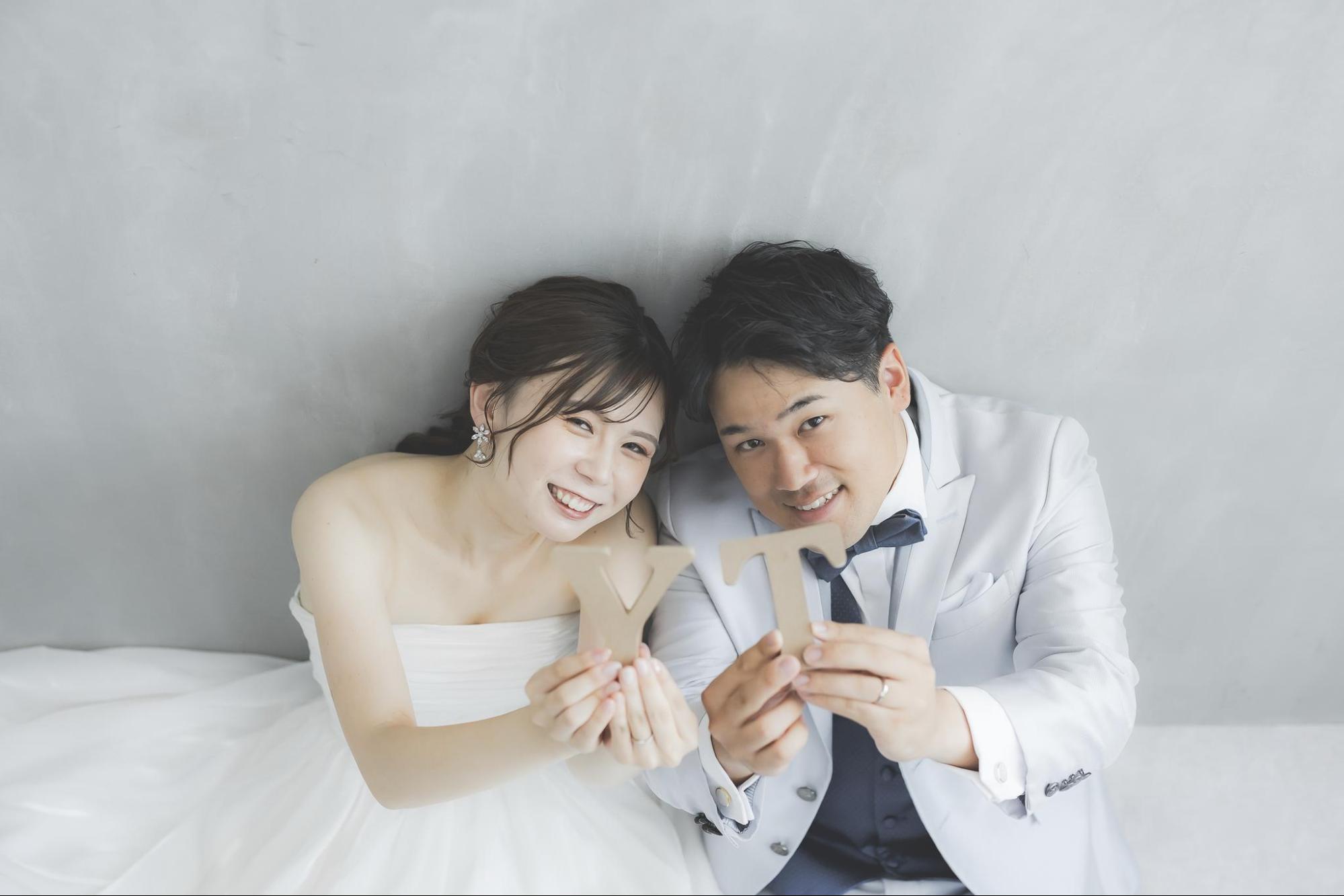 名前を表すアルファベットのバルーンでイニシャルを並べれば、ポップで楽しい雰囲気が演出できます。手に持ってポーズを決めたり、背景として飾ったりとアレンジも自在です。入籍というフォーマルな出来事を少し遊び心のあるスタイルで残すことで、写真の幅が広がります。購入しやすいため、セルフ撮影でも取り入れやすい小物です。