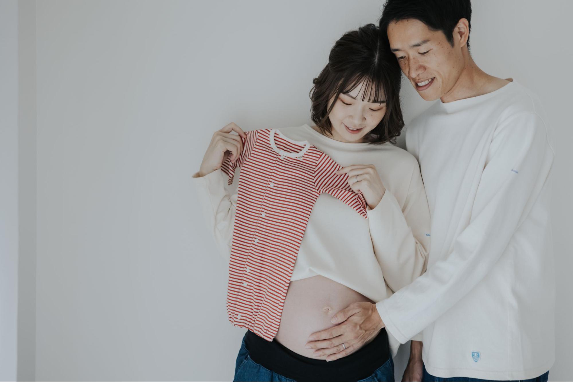 背景も単色を選び、ポーズやお腹のラインそのものを際立たせます。作り込みすぎない抜け感のあるおしゃれな写真が撮れると若い世代に支持されています。