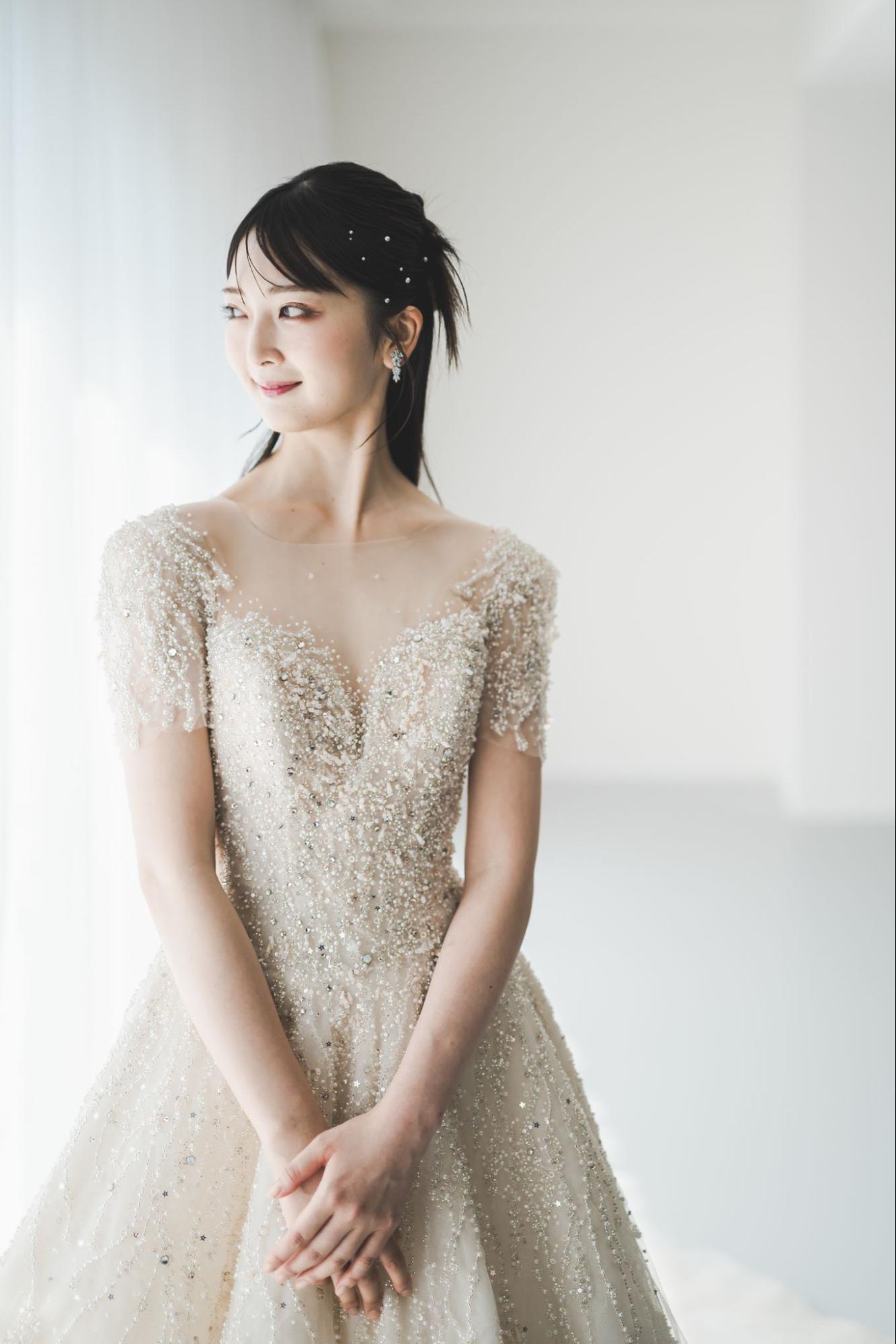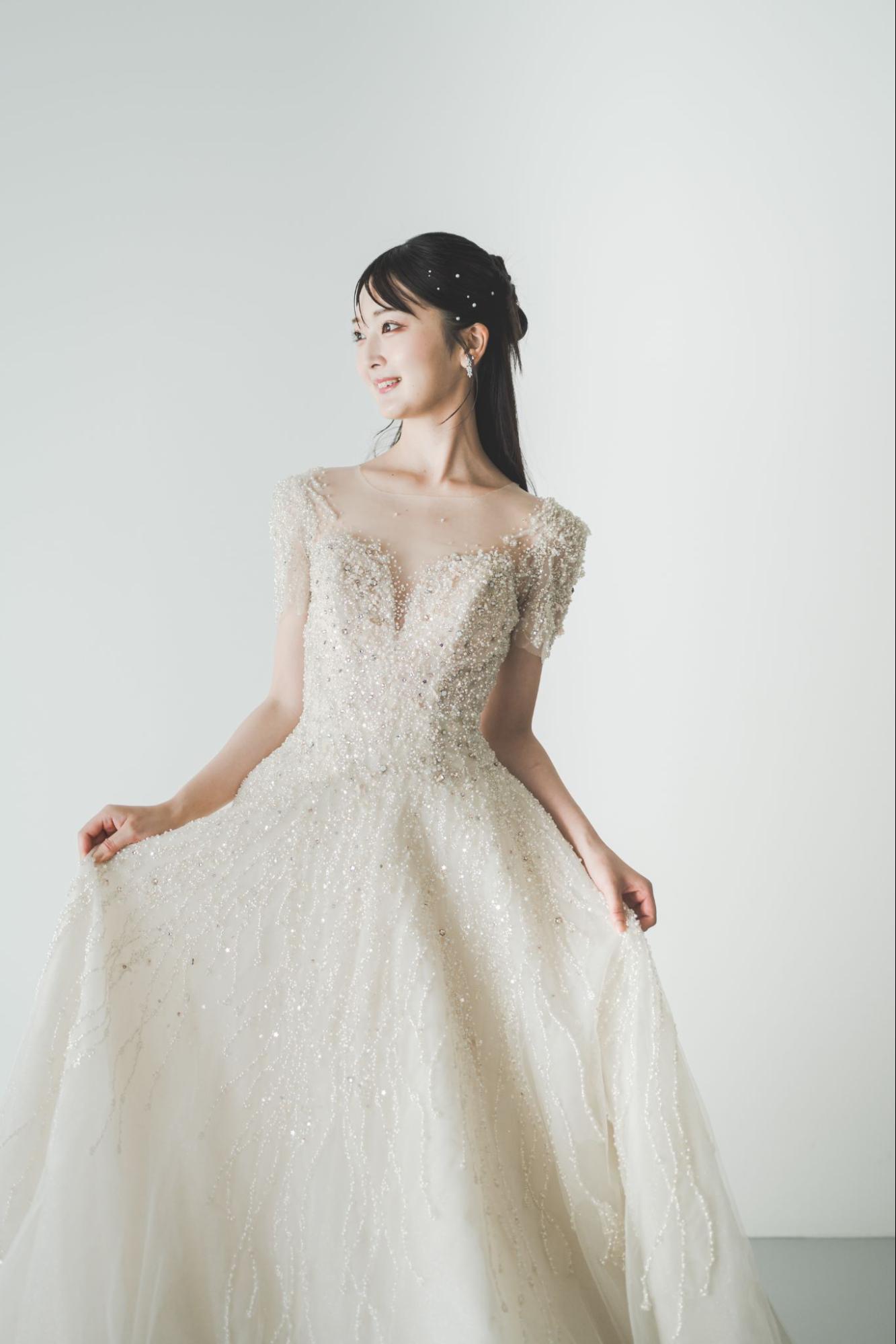 繊細なビジューと刺繍が織りなす圧倒的な輝き